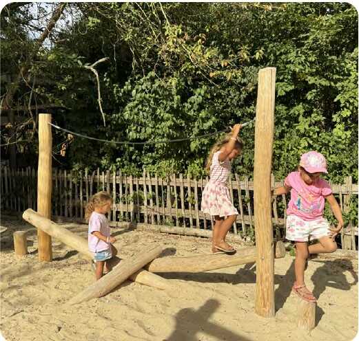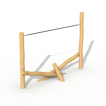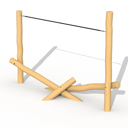 מסלול איזון ומעבר נמוך מעץ רוביניה הכולל בולי עץ וחבל מתוח, ליצירת אתגר תנועתי בגובה נמוך.